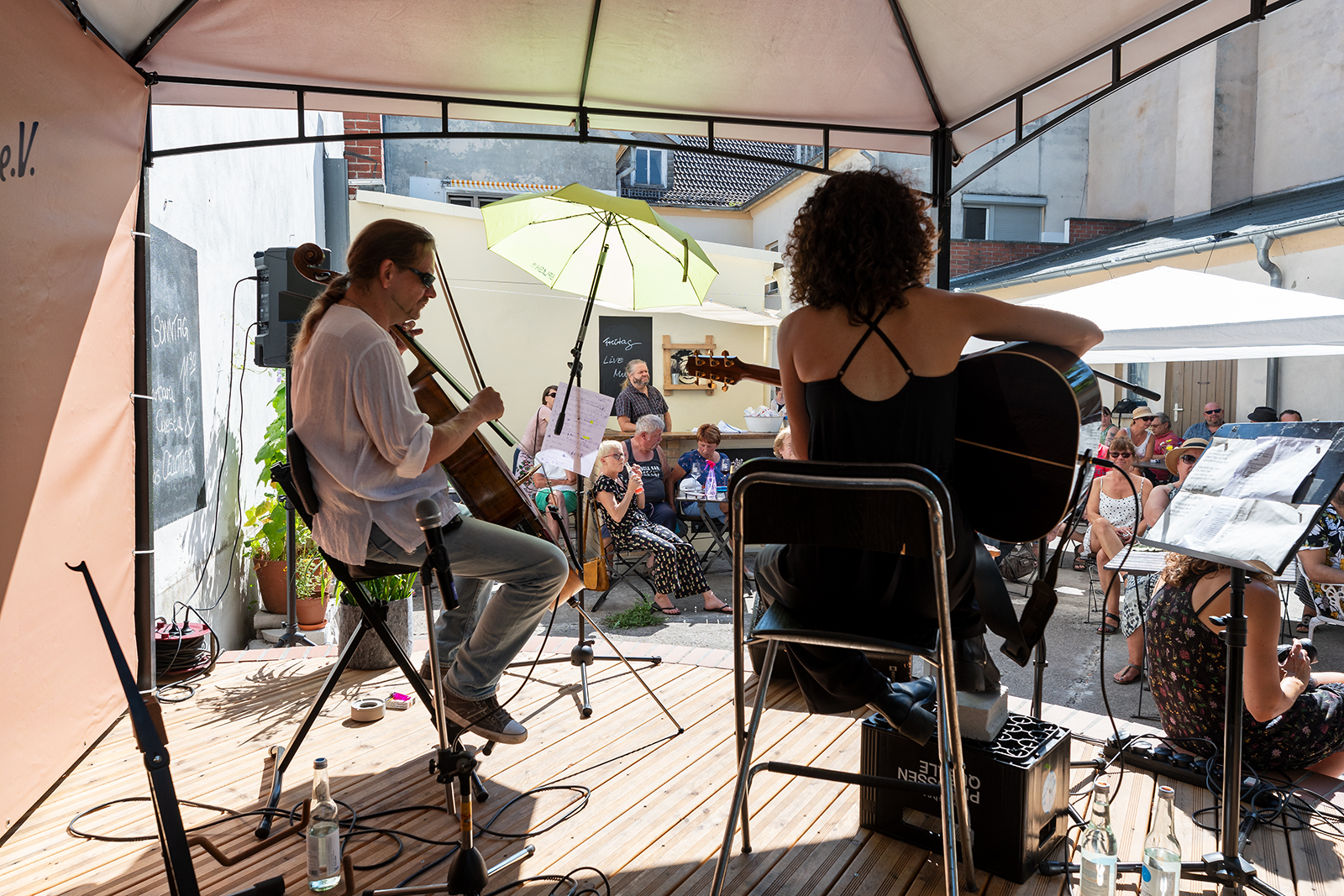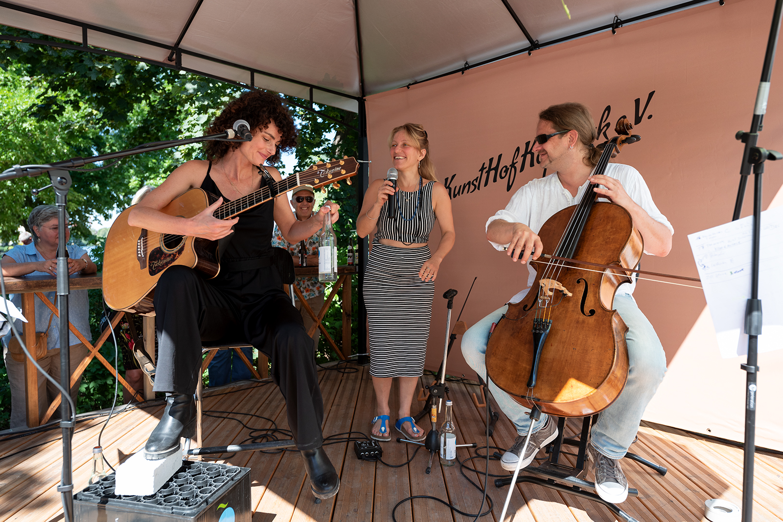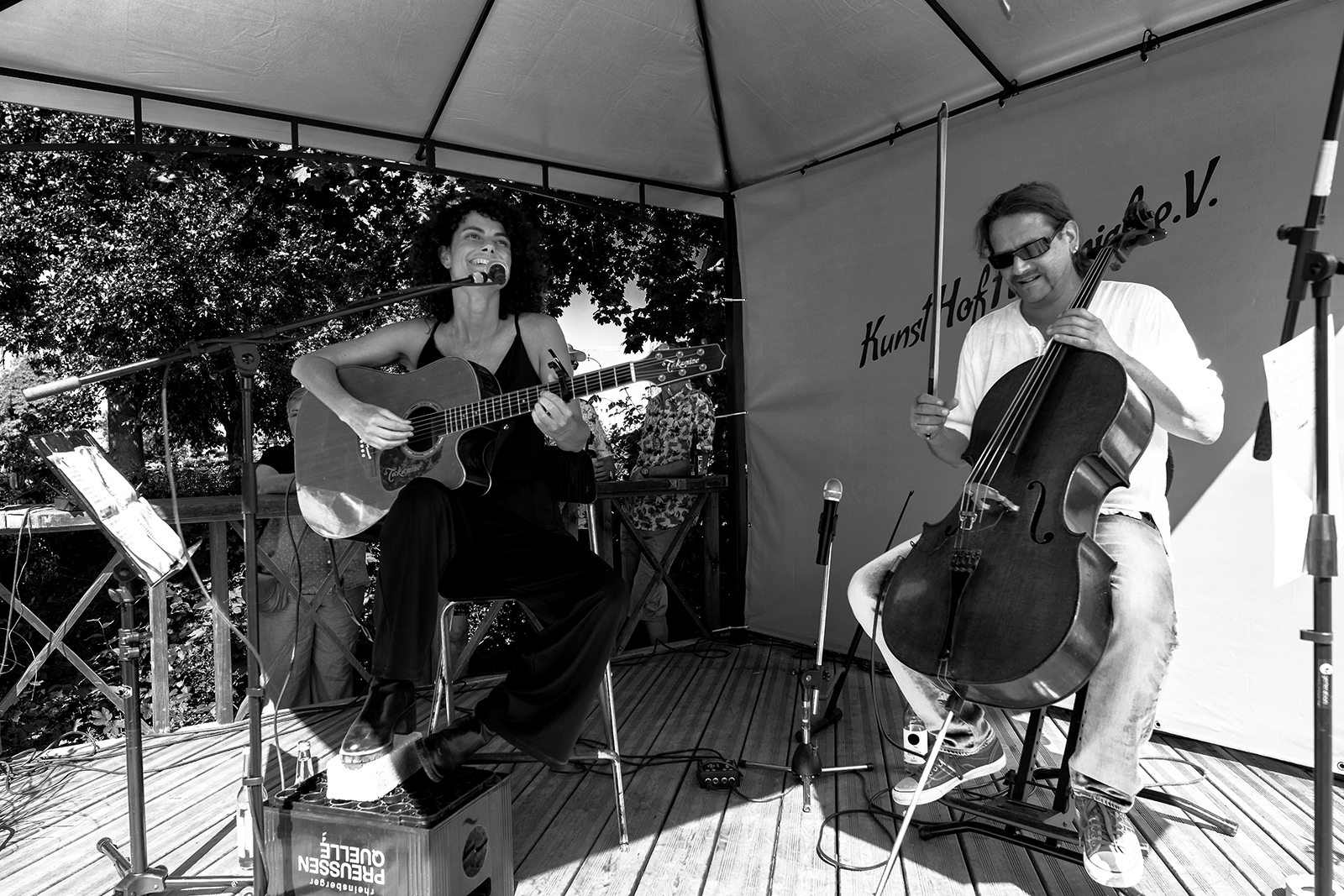 Eines scheint sicher, wenn Barbara ihr Cellotier auf dem Kunsthof besuchen kommt, sind extreme Temperaturen vorprogrammiert. Diesmal waren es wieder weit über 30°C die sie im Gepäck hatte und was sollen wir sagen: ES MACHT UNS NICHTS AUS! Egal ob extreme Hitze oder knapp oberhalb des Gefrierpunktes, der Hof ist voll, das Publikum gespannt und jeder kommt auf seine Kosten.