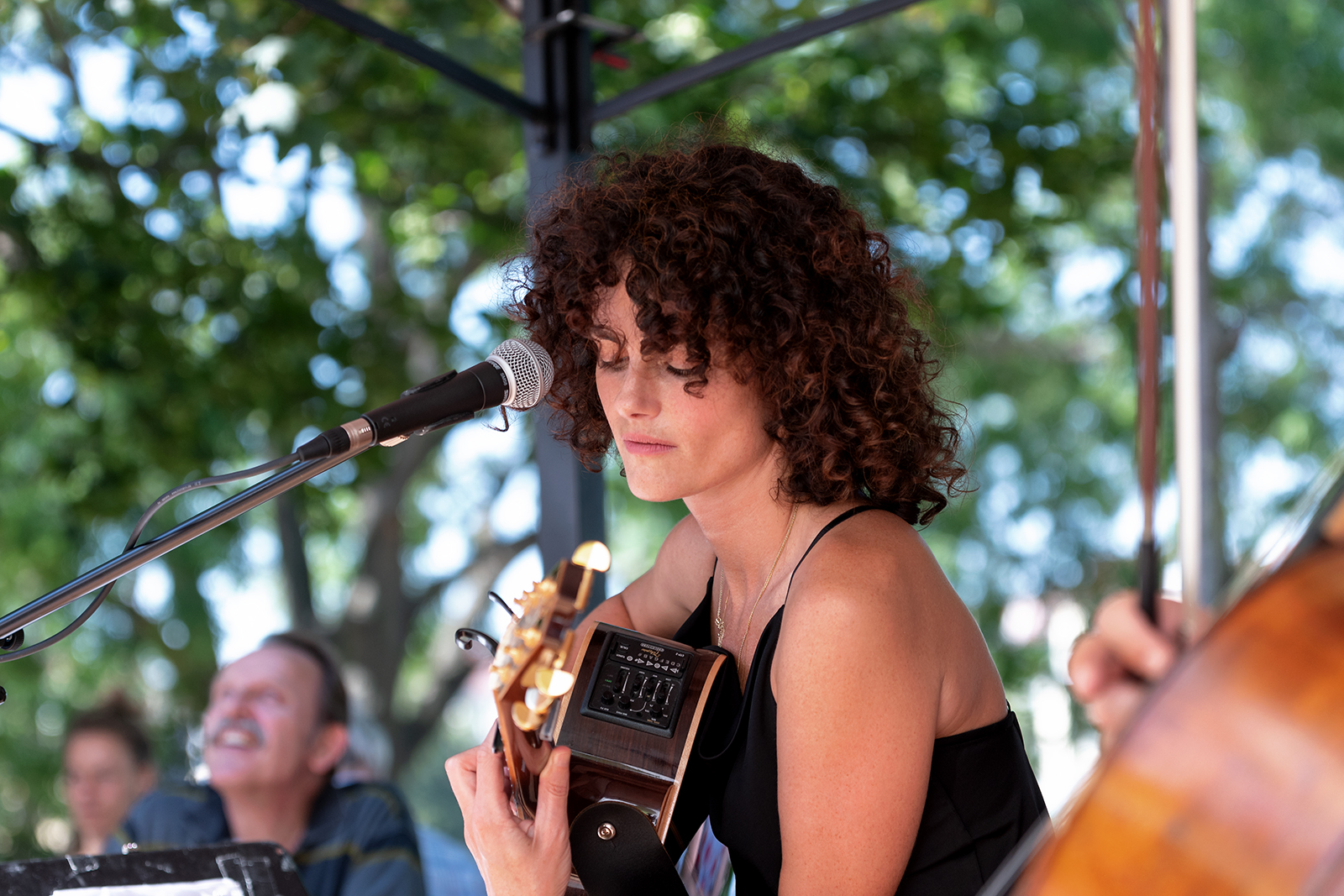 Denn diese tolle Frau mit dieser kraftvollen und doch sanften Stimme verzaubert alle. Gleich in welcher Sprache sie singt, ihre Lieder sprechen eine eindeutige international-emotionale Sprache. Und zusammen mit ihrer liebevoll gespielten Gitarre und dem warmen Spiel des Cellos von Tobias Unterberg geht die Musik bis tief unter die Haut und trifft genau dahin, wo Musik am besten verstanden wird, direkt ins Herz.
