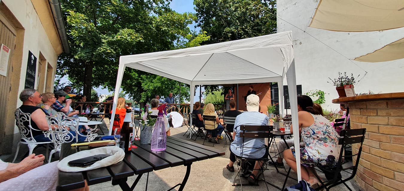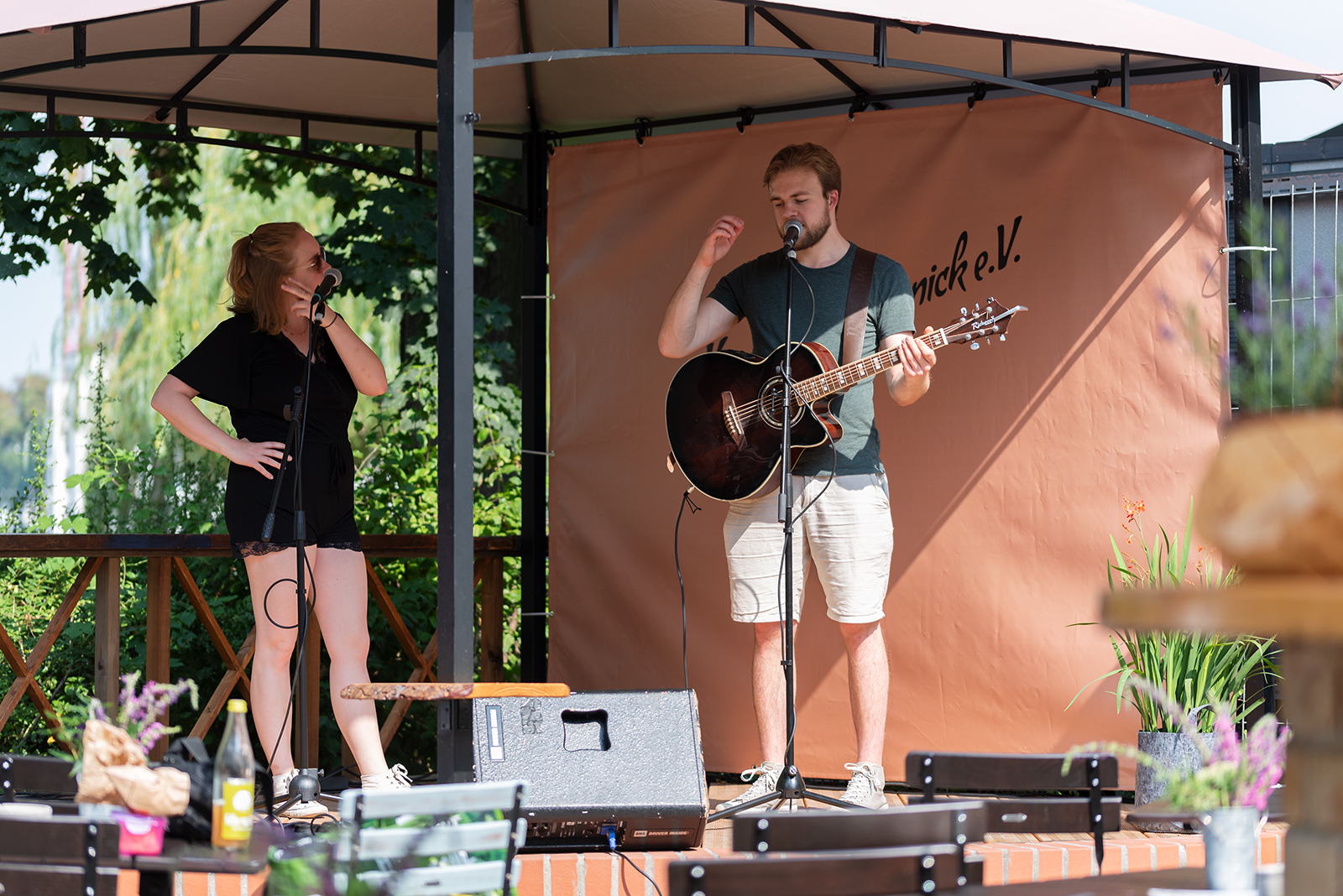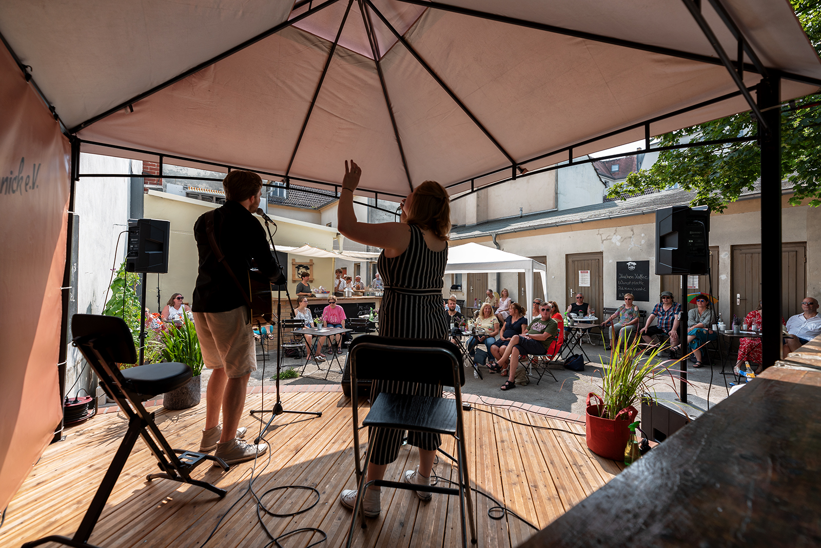 So ist das eben, wenn sich zwei musikalisch gefunden haben und ihren Weg gehen. Und so macht das Spaß, Pat & Bell, dem KunstHof -Team und dem geneigten Publikum, welches auch an diesem Sonntag sehr zahlreich und gut gelaunt den Hof bevölkerte.