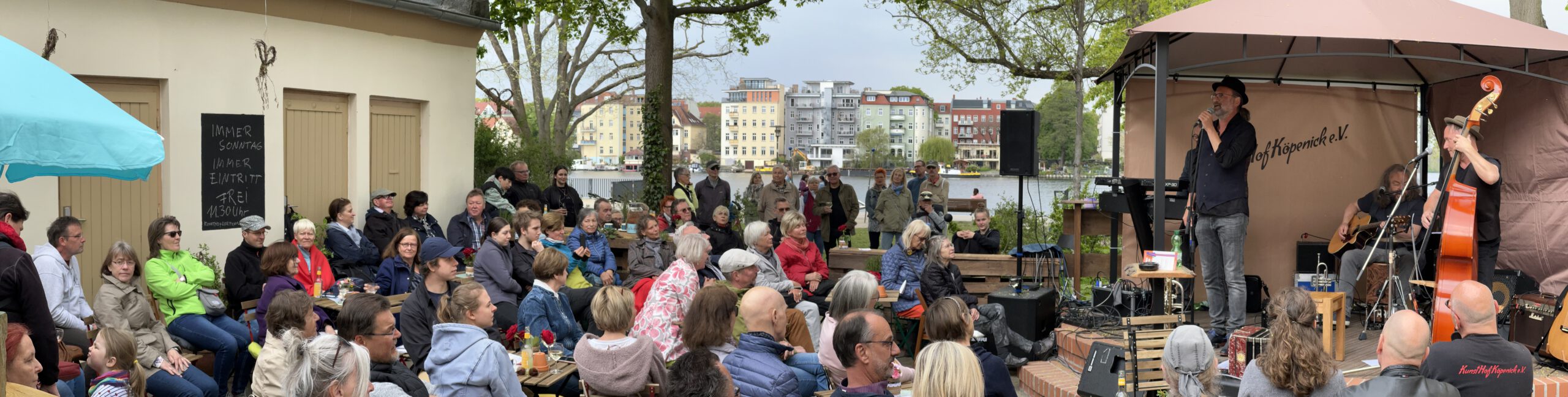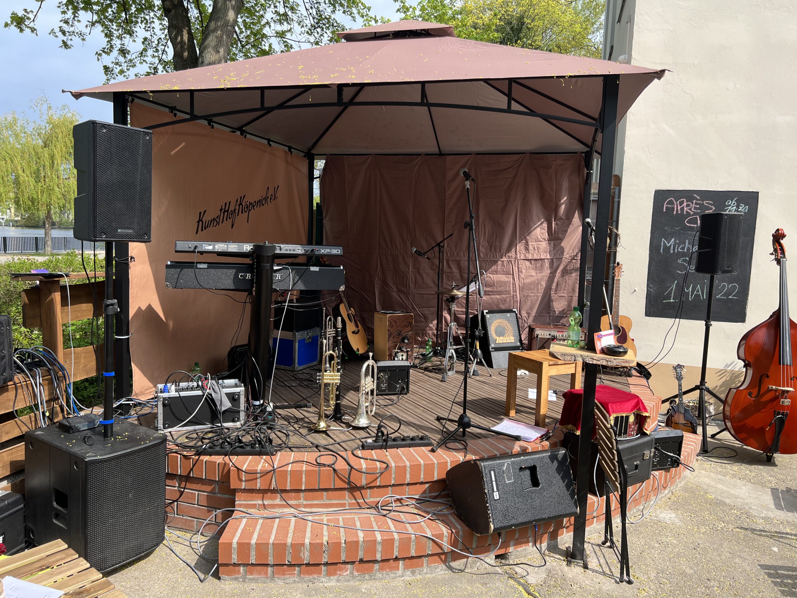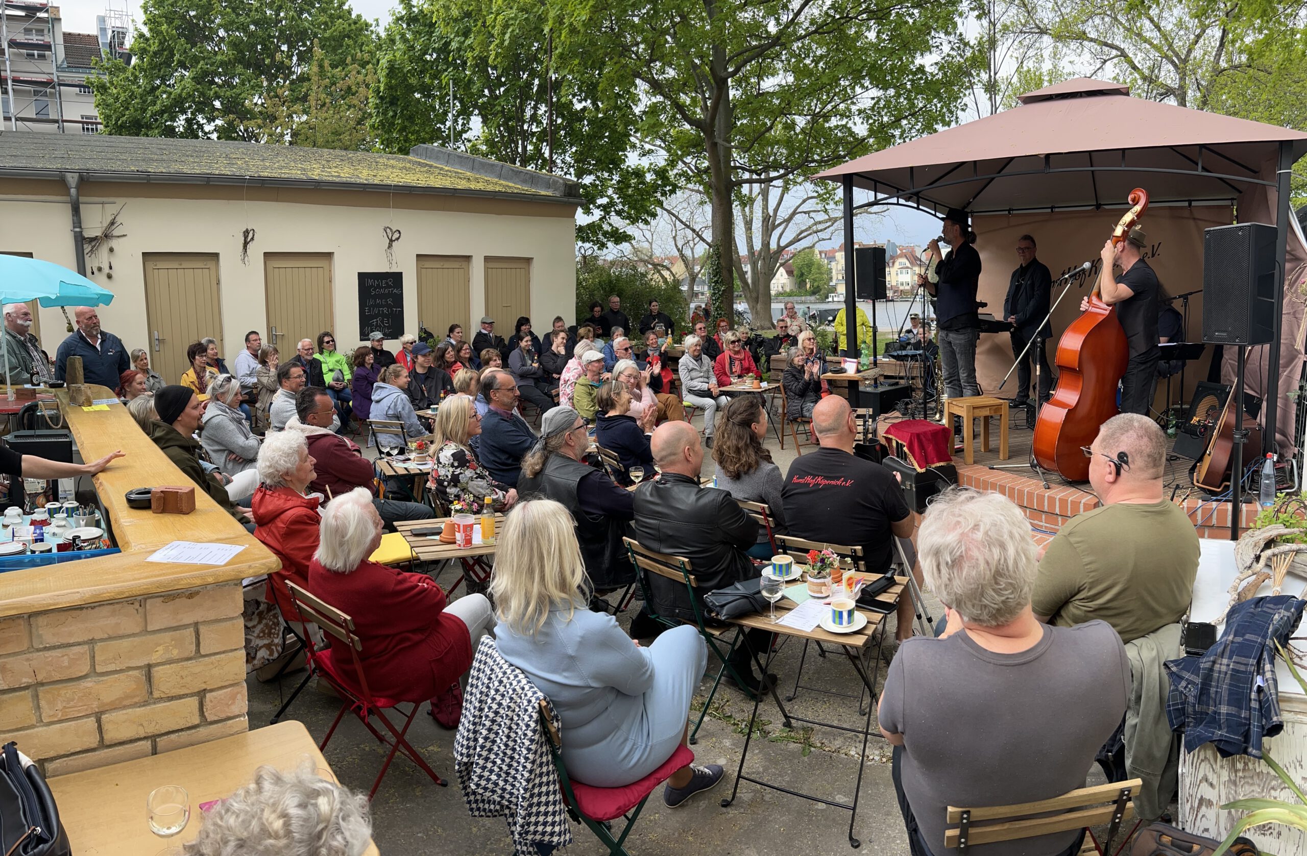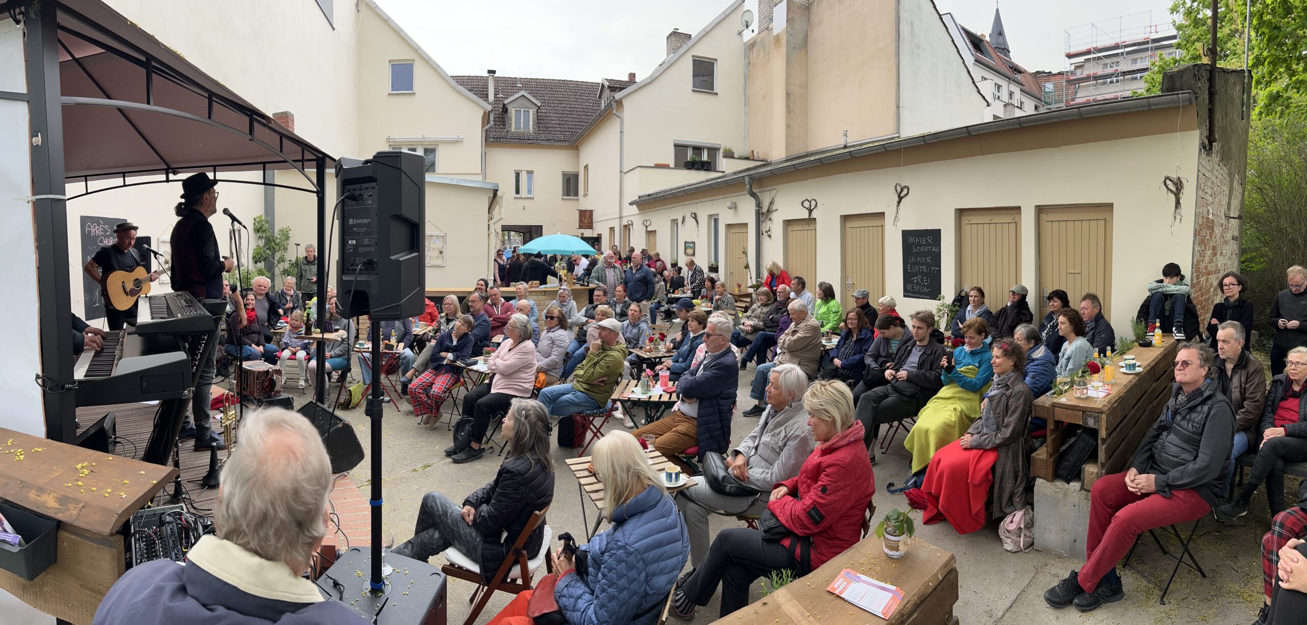 Und so dauerte es denn auch nicht lange, und unser wie üblich gut gefüllter Hof war am toben! Kurzweil, markant pointierter Humor und musikalisch-handwerkliche Perfektion waren das Geheimnis dieses durchweg gelungenen Sonntags. Auch Seidels vermeintliches Lampenfieber wurde, so es denn vorhanden war, professionell kaschiert, und das gar im Angesicht der eigens zum Event delegierten Dorfabordnung (welche die Kapelle zum Ende gar mit einem reichhaltigen Sortiment nahrhafter Wurstprodukte beschenken sollte).