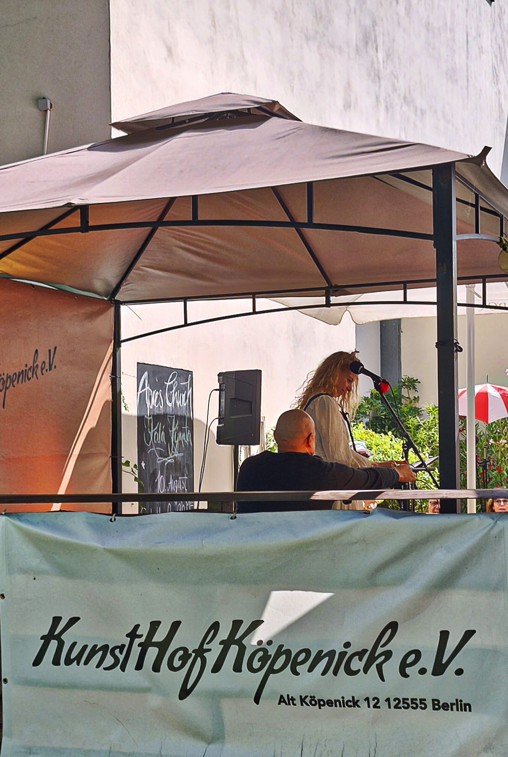 so beginnen wir den Bericht heute, wie Fontaine und Marubia das Konzert beenden werden (Joy to you) und zwar damit, dass der Köpenicker Stadtstreicher und Onkel mit der Laterne Tobias zur Eröffnung weder Bruder Jakob, noch die KunstHof Hymne anstimmen ließ, sondern das ganze Team und das Publikum unserem lieben Norbert ein Geburtstagsständchen darbrachte und womit?