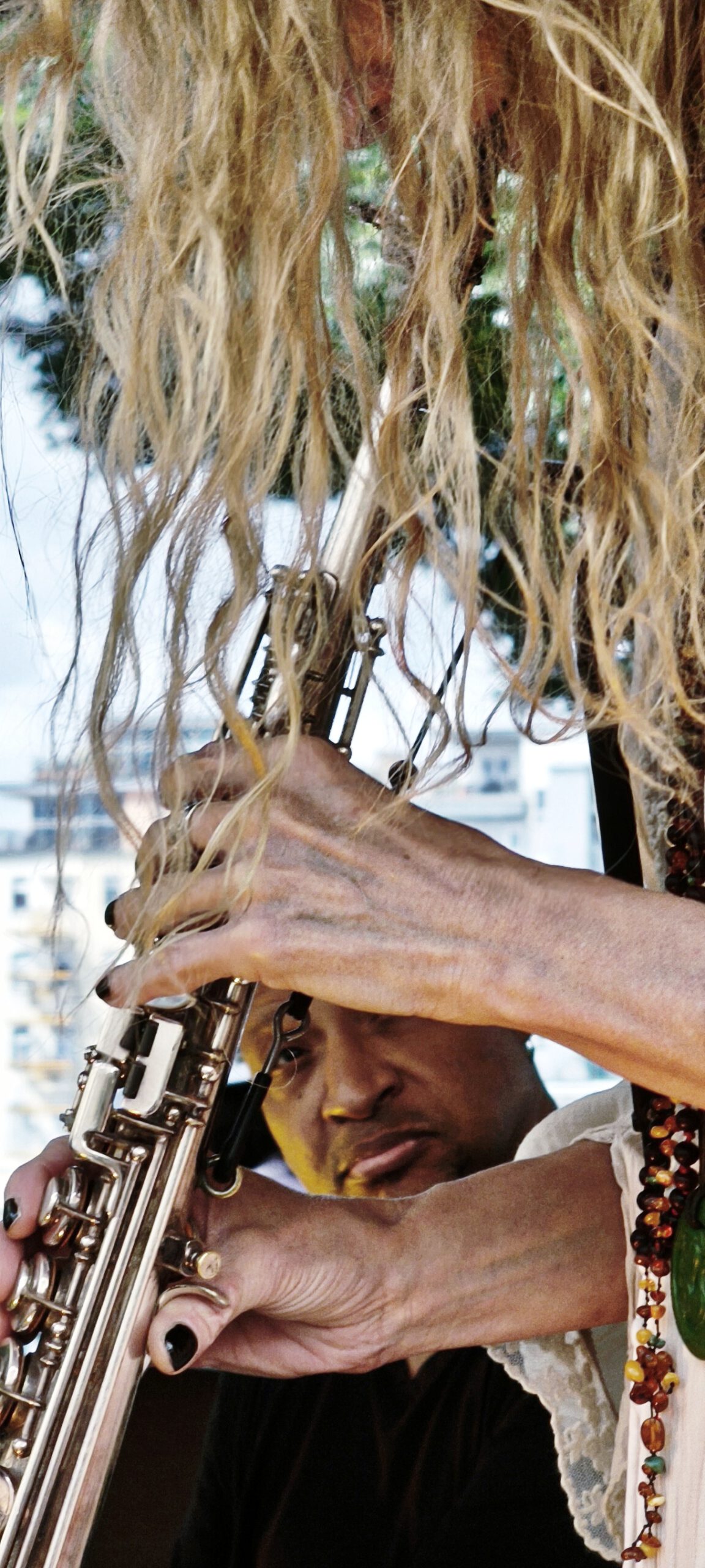 In der ersten Improvisation spielten die Instrumente, in diesem Fall das Array Mbia von Fontaine und das Tenorsaxophon von Marubia noch gut mit, aber schon während der Ansage zum zweiten Song streikte der Empfänger von Marubias eigenem Saxophonmikrofon und es begann das Battle um „was passiert als Nächstes?“ 😉