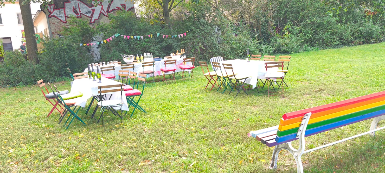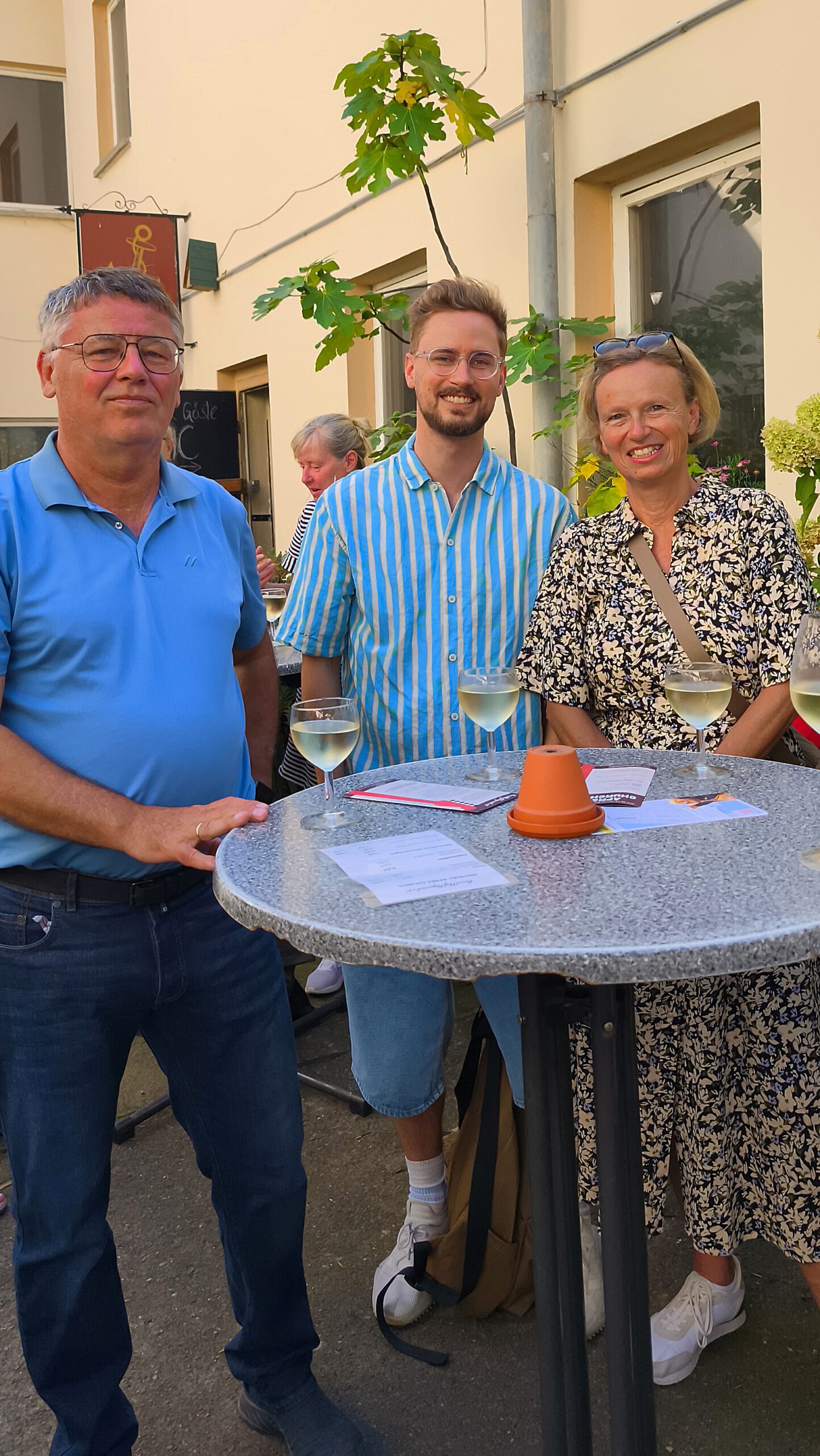 Mussten ja auch noch einige Spuren des kunsthoflichen Supports des Vortages beseitigt werden. Denn am Samstag konnte der KunstHof bei einem sehr freudigen Ereignis unterstützen und mit ein paar Stühlen und Tischen sowie Gläsern für einen Hochzeitsemfang aushelfen. An dieser Stelle also noch einmal ein Hoch auf das glückliche Brautpaar und alles Liebe für die Zukunft!!! und einen lieben Dank an die beiden Helfer Hajü und Norbert.