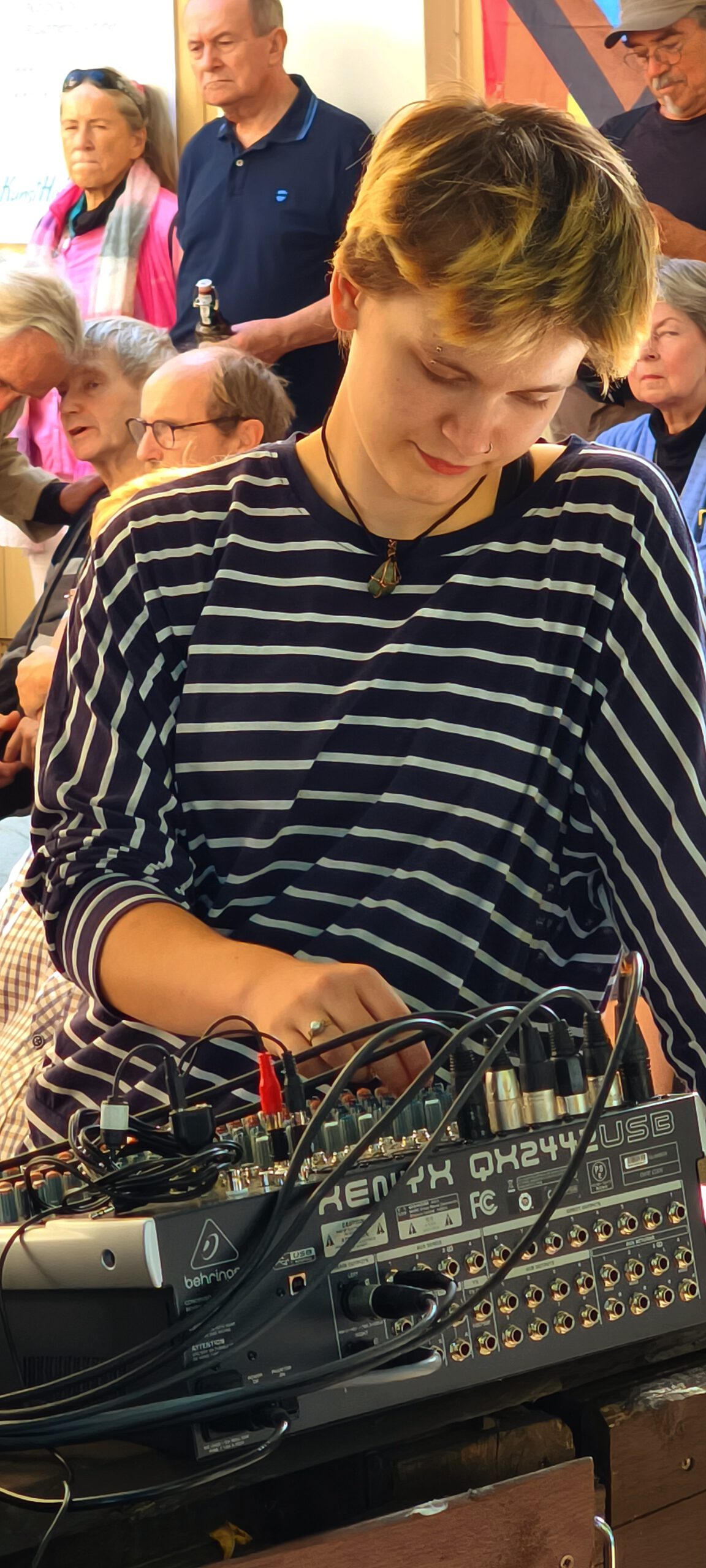 Und so hangelte sich das Programm auch nicht entlang eines Genres oder einer durchgestylten Programmatik, sondern es war persönlich, es war ein gut abgestimmter Mix inspiriert vom Leben von Andreas und Matthias. Und das ist bei uns auf dem Hof genau richtig. Wir hörten klanghafte Stücke wie „Bach Beats Balkan“ und ein finnisches Volkslied, welches übrigens nicht in der Sauna gespielt wird. Und ein Stück aus einem Urlaub von Matthias, wo er sich zur Entspannung und um zu Komponieren in ein Nonnenkloster begeben hat. Und eigentlich war es eine Intention die Ruhe und Stille des Klosters wiederzugeben, so der Anfangsgedanke. Jedoch kam es ganz anders, denn die Nonnen sind eher als Frühaufsteher zu bezeichnen und so wecken sie ihre Gäste morgentlich um 04:50Uhr mit Gesang, der mittels in Wänden versteckter Technik, nahezu direkt aus der Wand in die Zimmer übertragen wird, sodass schon das Gefühl aufkommt, die Nonen ständen direkt neben dem Bett…Und erwähnte ich schon, dass es 04:50Uhr war und das im Urlaub…da soll noch mal einer sagen, wir wären früh dran mit den Konzerten…😊