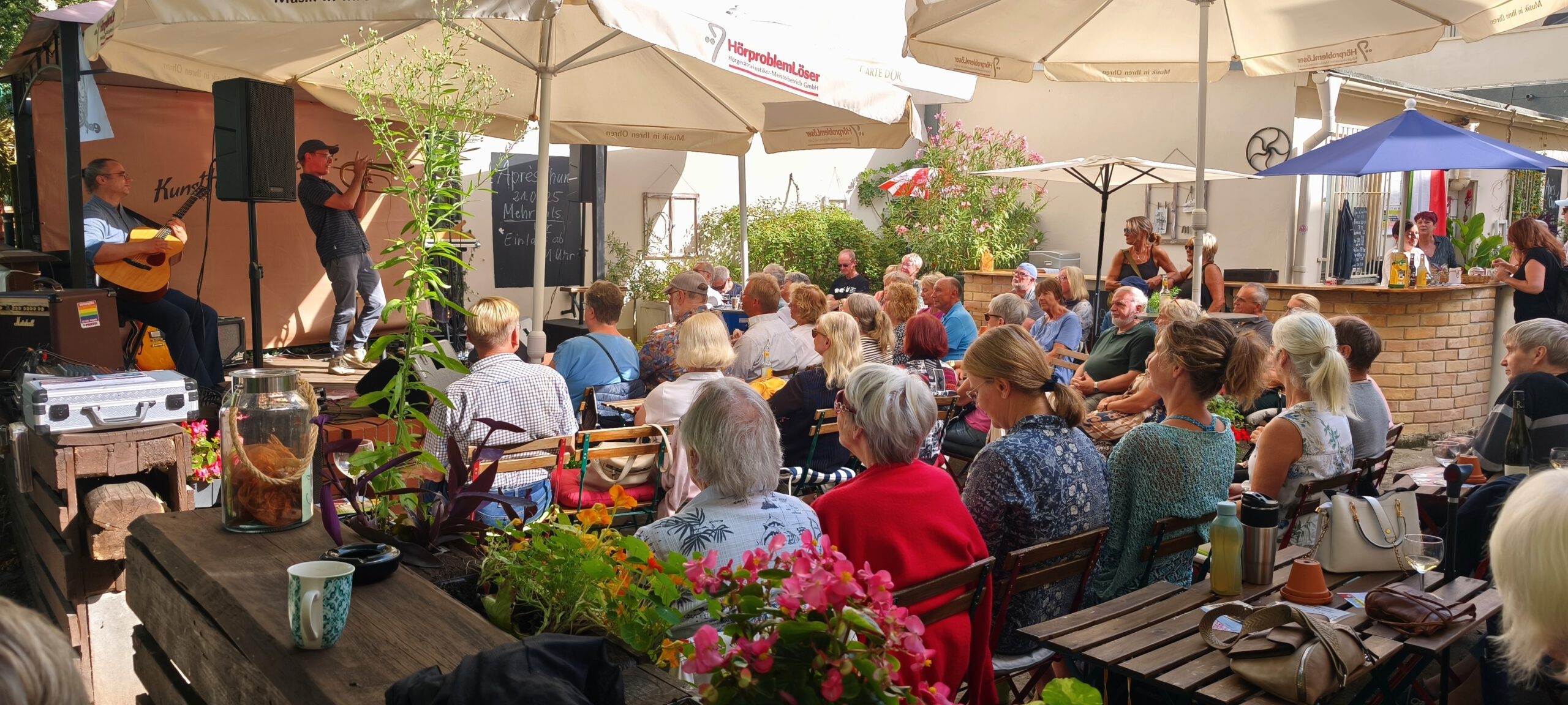 Und auch wenn Matthias und Andreas am Sonntag gar nicht aus Leipzig zu uns anreisten, da Sie auf Tour waren, waren sie im Vergleich zu unserem KunstHofTeam sehr pünktlich und somit um 9 Uhr am Hof…Aber keine Panik, auch die KunstHofler trudelten nach und nach ein und der Aufbau konnte ohne weitergehende Probleme und Folgen bewerkstelligt werden.
