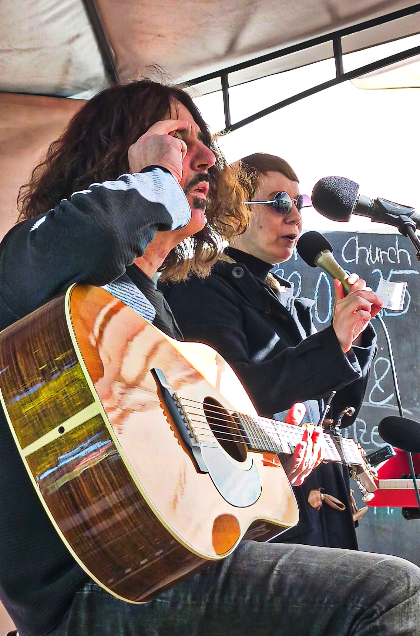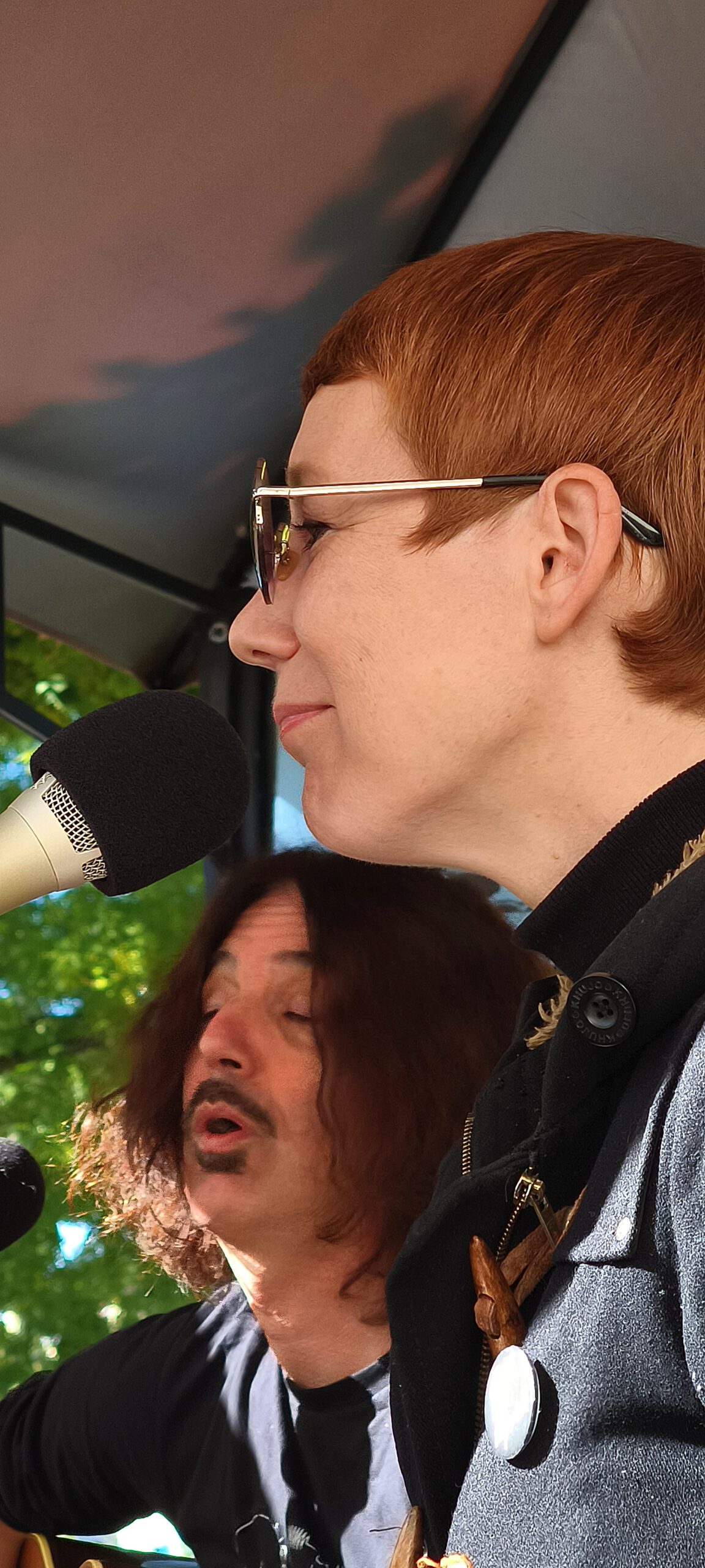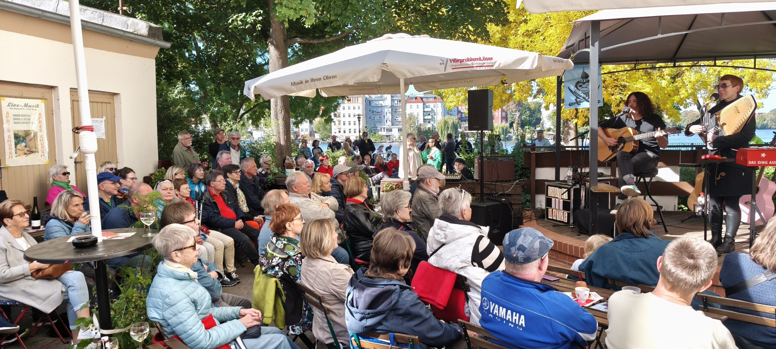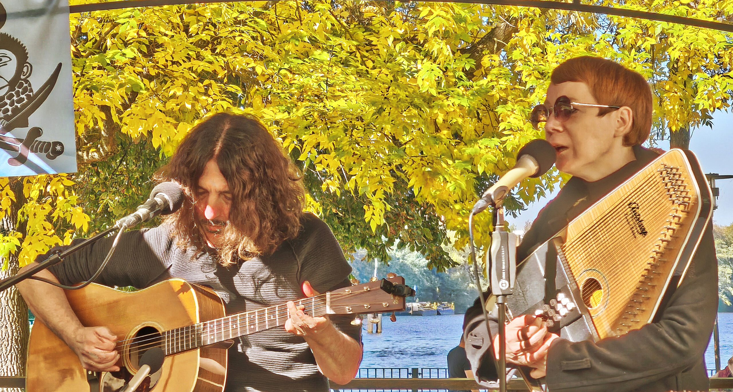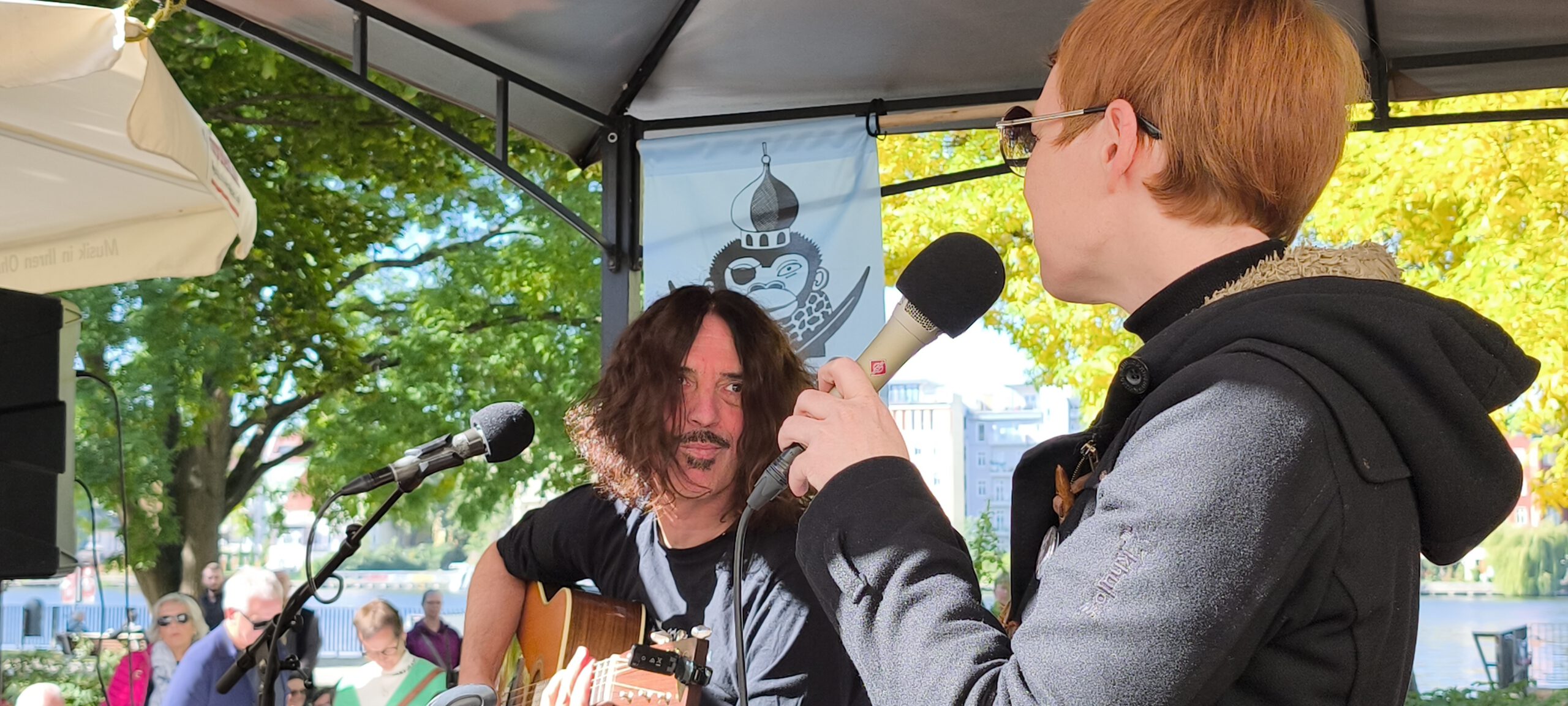 Damit sollte das Konzert von Shakti & Matze auf dem KunstHofKöpenick heute starten. Wie wir alle wissen, ist eine Plattitüde laut Definition eine belanglose Aussage und wir können es als absolutes Understatement der beiden Protagonisten des heutigen Vormittags werten, so zu starten, denn….belanglose Aussagen kann man den beiden, die ihre Lieder zumeist im Winter am Küchentisch schreiben, nun wirklich nicht vorhalten. Im Gegenteil! Immer unterhaltsam, immer ohne Zeigefinger und sehr humorig bringen die beiden ihre Geschichten zu Gehör, die so oder so ähnlich auch unsere sein könnten. Und das ist nicht alles, das ganze würzen sie mit einer klaren Dramaturgie, die sicher der jahrelangen Erfahrung der Kleinkunstbühnen dieser Republik entspringt. Mich freut so etwas immer sehr, wenn nicht lediglich die Lieder abgespielt werden, sondern der Kontakt mit dem Publikum gesucht wird, auch über kleine aber sehr feine Ideen zu den Liedern. In An- und/oder Absagen oder auch währenddessen. Und das freut nicht nur mich, sondern das ganze Publikum. Schon bei der charmanten Eröffnung durch Shakti waren also alle mit im Boot und ganz Ohr.
