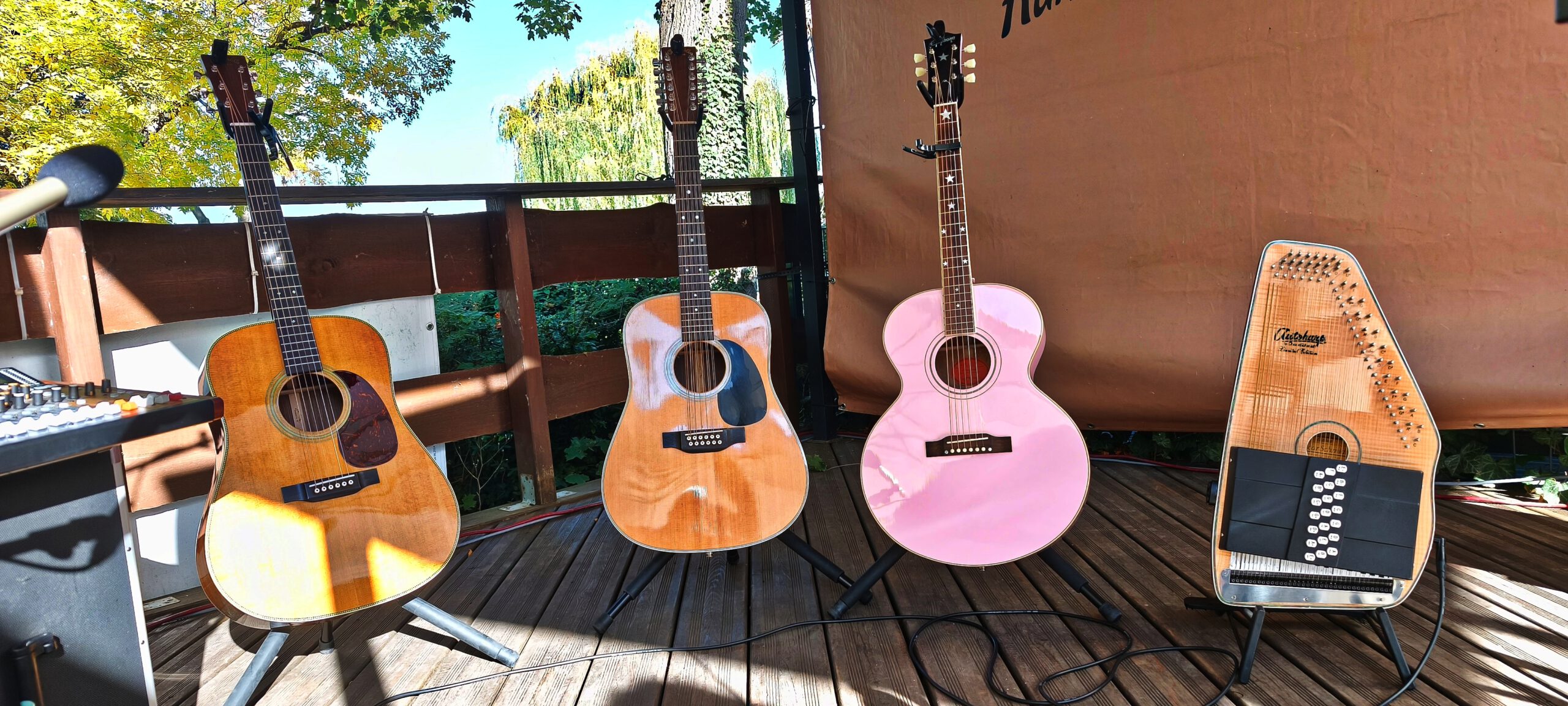 Wer nicht selbst kochen will oder kann, kann ja auch mal n Tag im Café verbringen, aber ich nutze dieses Lied jetzt, um endlich auf das vielfältige Instrumentarium von Shakti & Matze zu verweisen, sonst entsteht hier noch der Eindruck eines „Gedichtvortragevormittags“. Nein …wir hörten ja Lieder und die wollen gesungen und bespielt werden.
