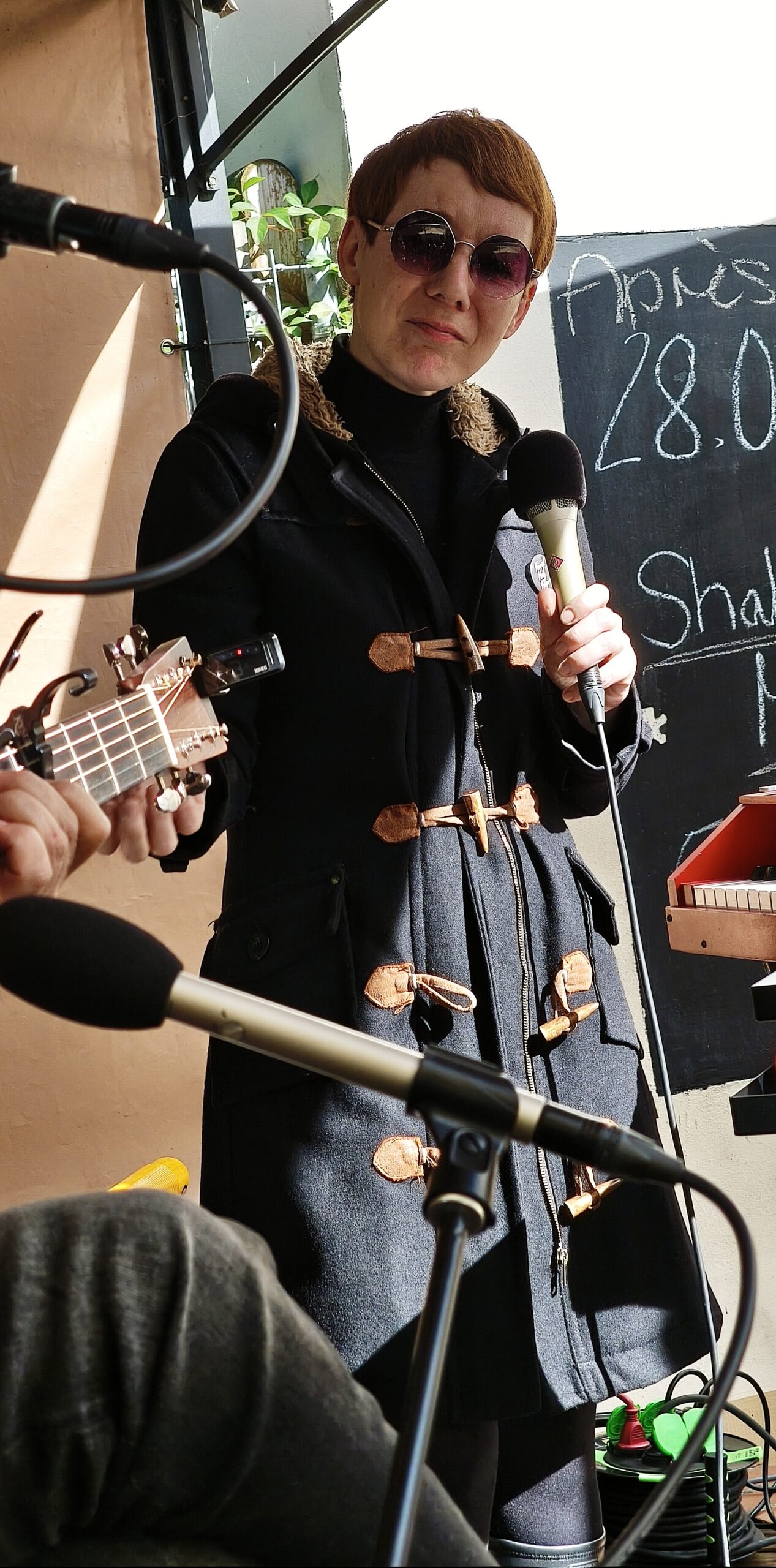 Also beide singen natürlich, Matze spielt im Laufe des Programms drei verschiedene Gitarren und das außergewöhnlich gut und Shakti bedient über das Programm verteilt viele Kleinstinstrumente und auch der Fakt, dass sie viele davon nur ein einziges Mal benutzt, holt mich dramaturgisch komplett ab. Ich liebe das, es zeugt ja auch von Spieltrieb und Liebe zur Sache und ich unterstelle jetzt mal, dass es genau zwei Wege zum Einsatz eines bestimmten Instrumentes gibt. Entweder ein Song braucht genau diesen Sound, diesen Klang und die anderen eben nicht, also kommt es eben nur einmal zum Einsatz, oder…und ja das ist eine Unterstellung, aber ich kenne das….es läuft einem ein Instrument, ein Geräuscherzeuger, ein „was auch immer“ über den Weg und man denkt, oh…wie großartig, wie lustig, wie toll…lass uns ein Lied dafür finden oder schreiben….Und so finden sich also im Geräusch und Klangsammelsurium, das von Shakti bedient wird, ein Klaviaturglockenspiel, wie bei eben diesem Lied oder auch eine Autoharp, die wir als Klang aus Gruselfilmen kennen, oder ein Stylophon, 2 Wah wah tubes (zu diesen beiden später mehr) und vieles, was da klopft und rasselt.