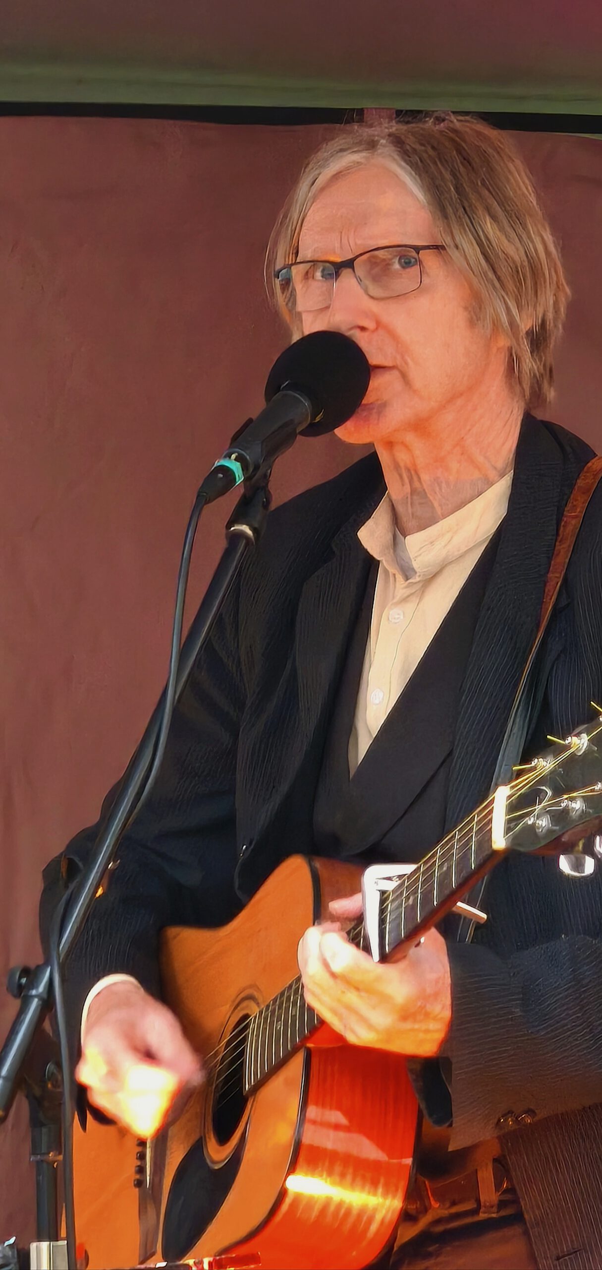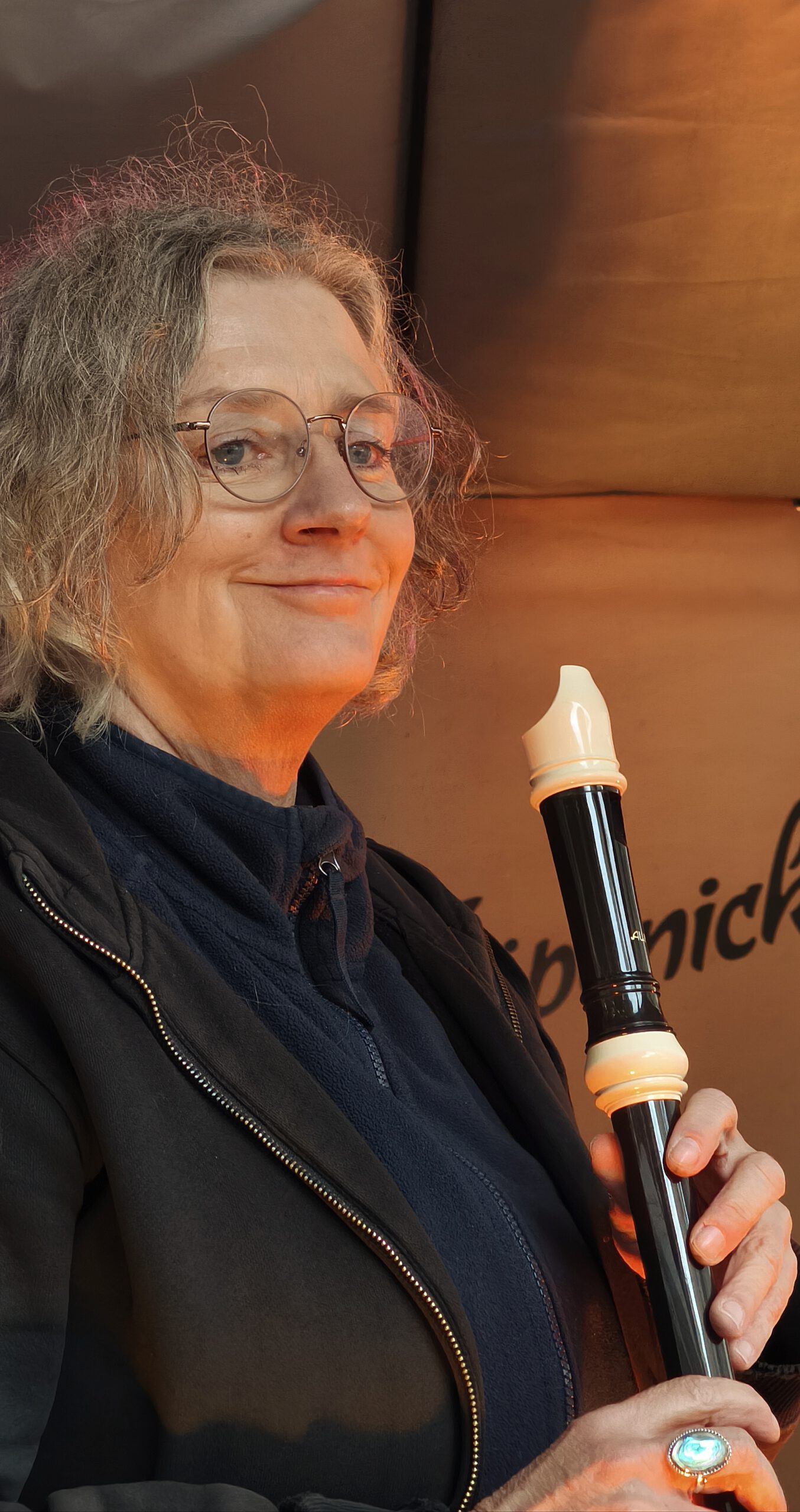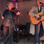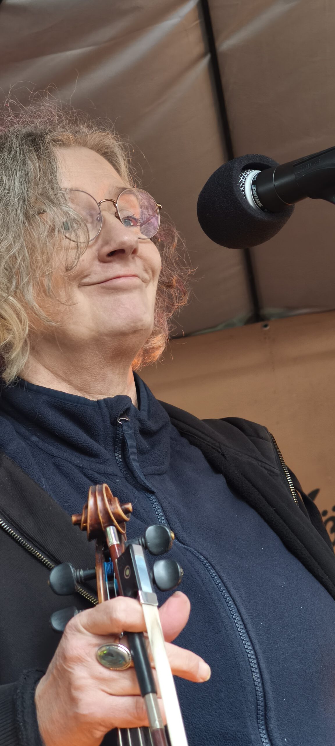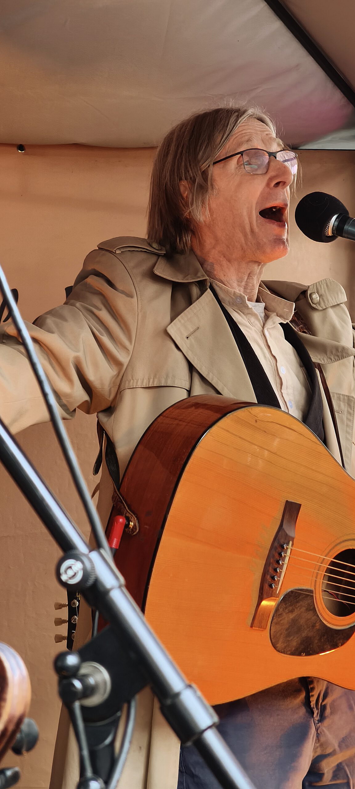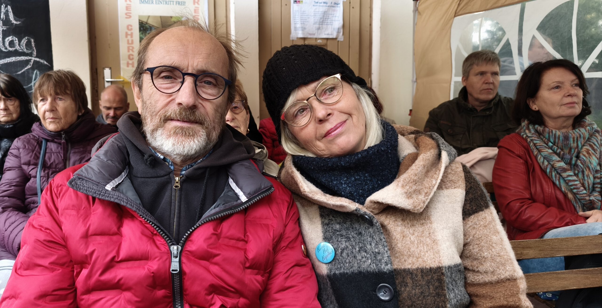 kein Lied über Köpenick, obwohl die hier auch rumjuckeln, aber doch ein Lied über die Schwierigkeit bei Regen und Wind mit einem solchen vorwärtszukommen. Und Regen und Wind ist ein gutes Stichwort. Ja…durchaus, es war etwas kühl heute, aber wie von Petrus zugesagt, regnete es NICHT, der Wind war mäßig, ab und zu brach sogar die Sonne durch. Das sah aber am Morgen wirklich noch nicht danach aus und wir ziehen wieder einmal alle Hüte vor unserem großartigen Publikum, welches dem Onkel mit der Laterne letzte Woche glaubte, der genau das versprach. Und hiermit setzen wir noch einen drauf und sagen: „Wat kost`die Welt, am nächsten Sonntag machen wir das einfach noch einmal genau so, also ohne Regen und mit unseren Decken und dem Glühwein und der vorgeheizten Bühne, gell Petrus? Läuft!“ Der Hof war also gut gefüllt, sogar Zaungäste waren wieder da und spätestens nach dem zweiten Lied hatte der Zauber unseres schönen Ortes auch Lüül und Kerstin gepackt.