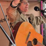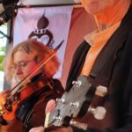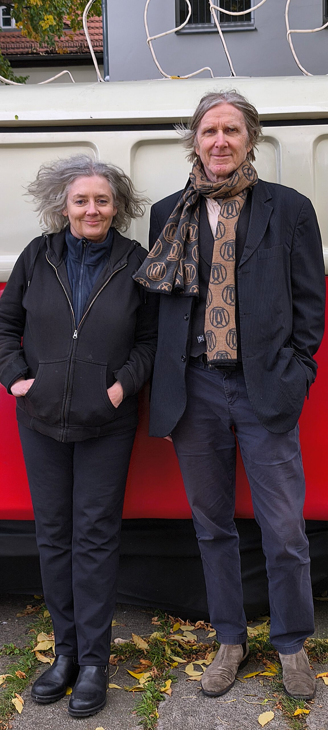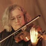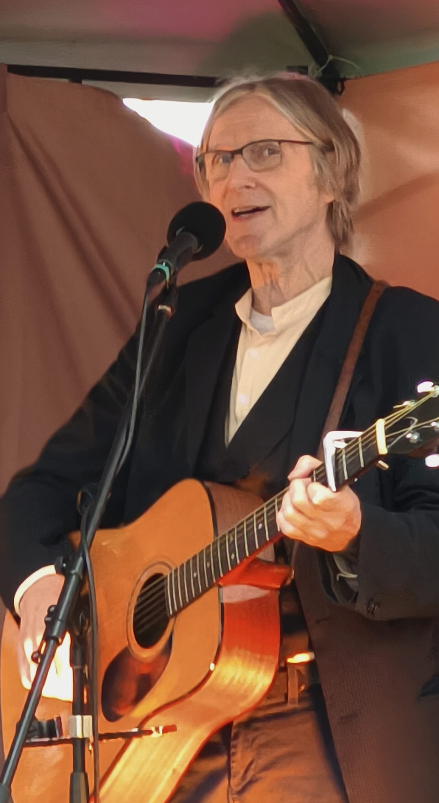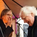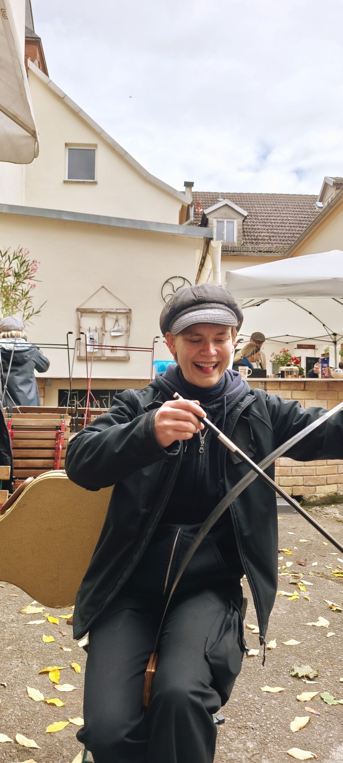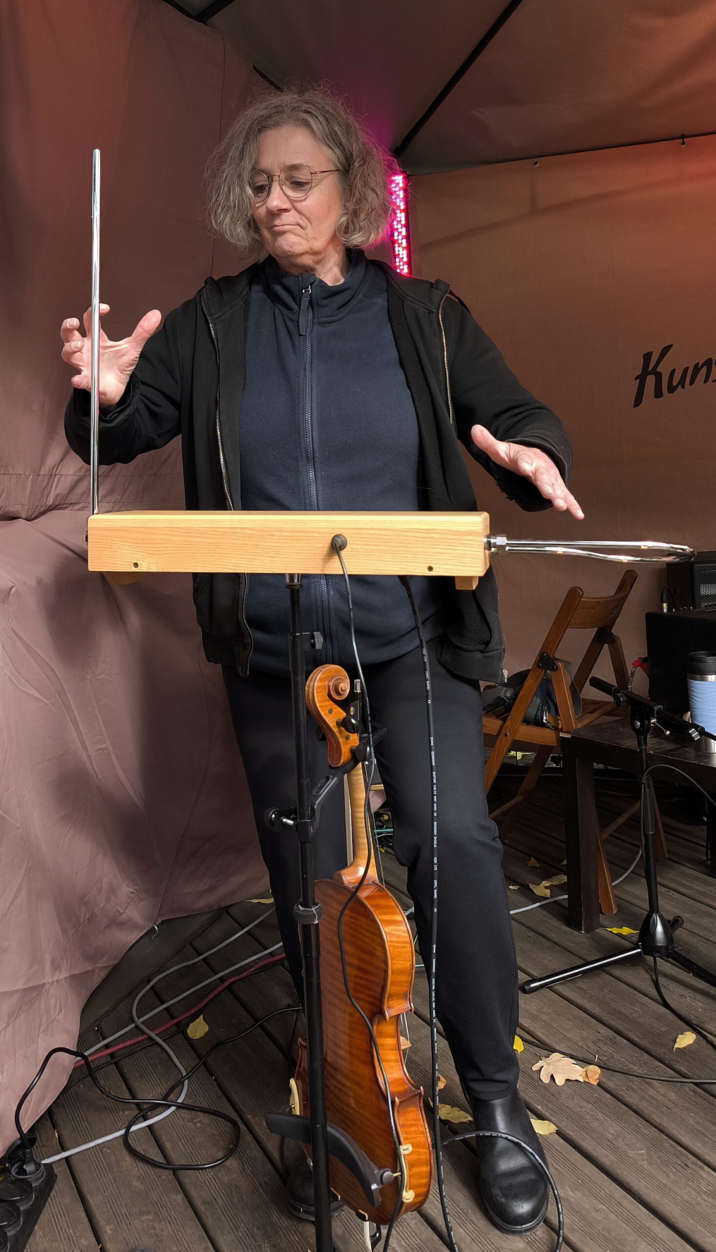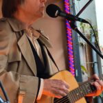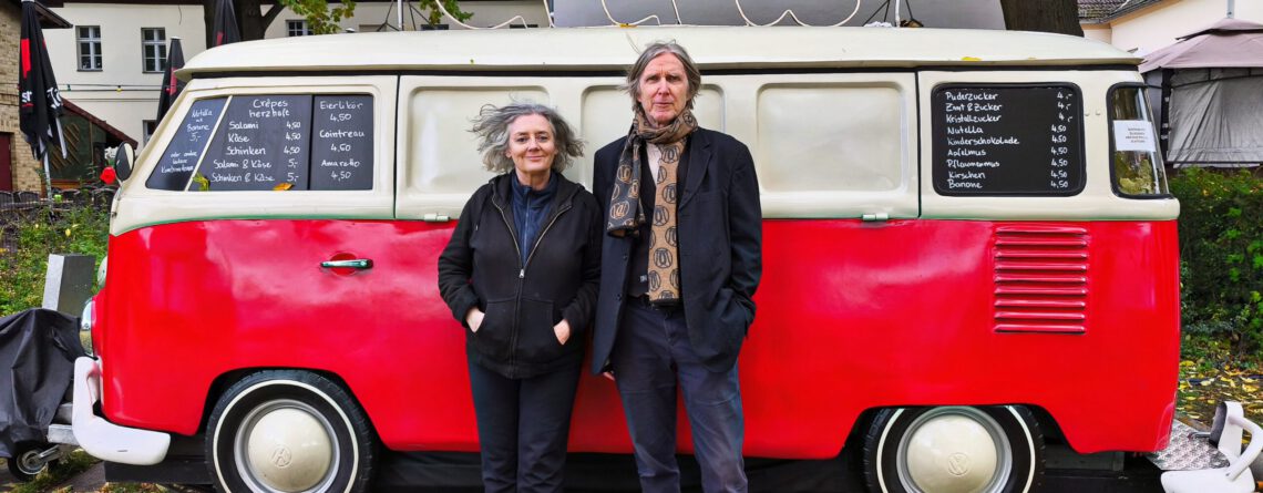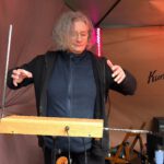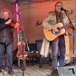 ist Lüül schon lange auf den Straßen und Bühnen dieser Welt, jedoch verschlug es ihn noch nie auf eine Bühne in Köpenick. Na sowas, da muss man doch was machen. Und wo, wenn nicht bei uns auf dem KunstHof, sollte denn die Köpenick-Premiere stattfinden? Und so kam er also, wenn auch n bissel übermüdet, am frühen Morgen zu uns und brachte dazu 3 Gitarren mit und Kerstin Kaernbach, die ihn am Gesang unterstützte und so ganz beiläufig noch wunderbar Viola, Violine, Theremin, Flöte und sogar einmal Singende Säge spielte. Wunderbar! – Tja, …wenn de so ne Kollejin hast, sparste Dir ne Band.