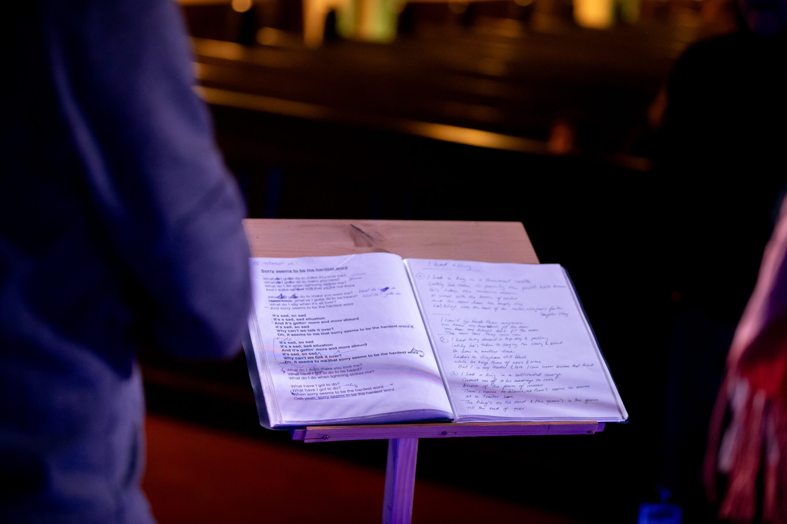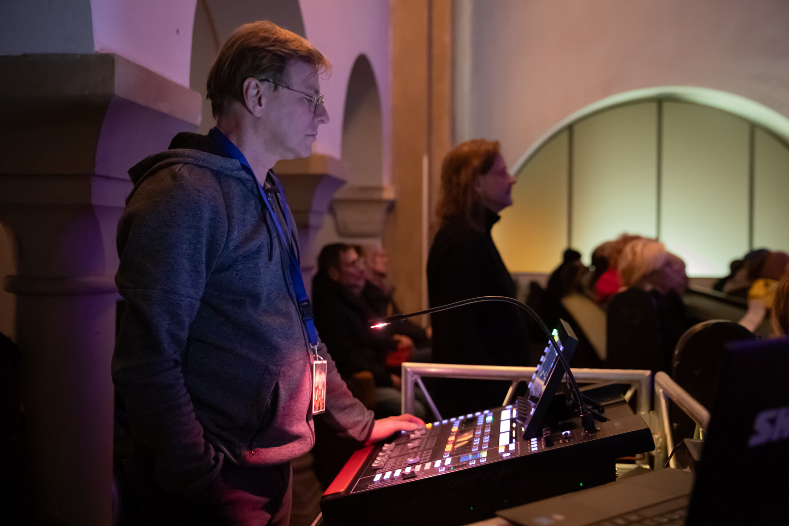- wir schleifen unser 4 Leuchten mit aufs Pult ein, um diesen Lichtwechsel bewusst machen zu können, denn am Ende war das blau super für den Einlass und den Anfang, aber der Wechsel auf Gelb hatte schon auch was und ermöglichte einen anderen Blick auf die Kuppel und deren Fresken. Danke Ralf für den Denkanstoß😉
