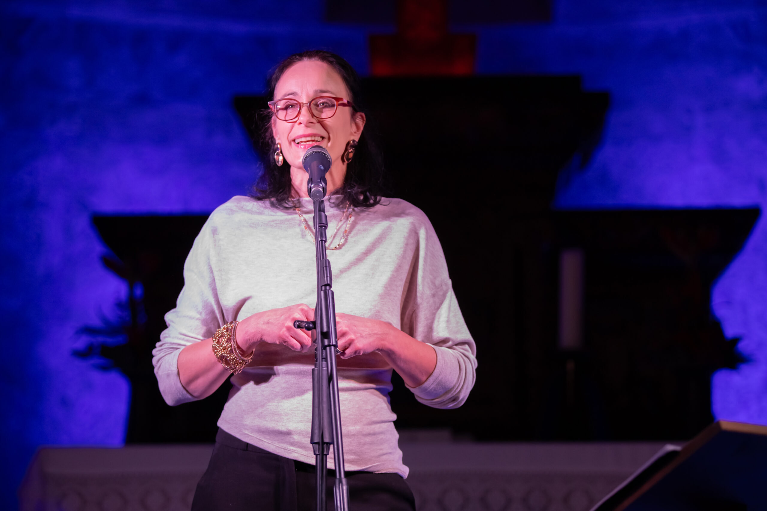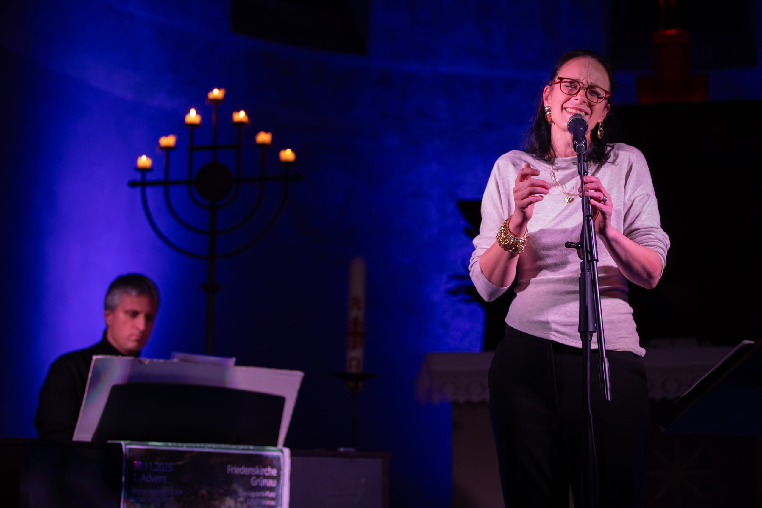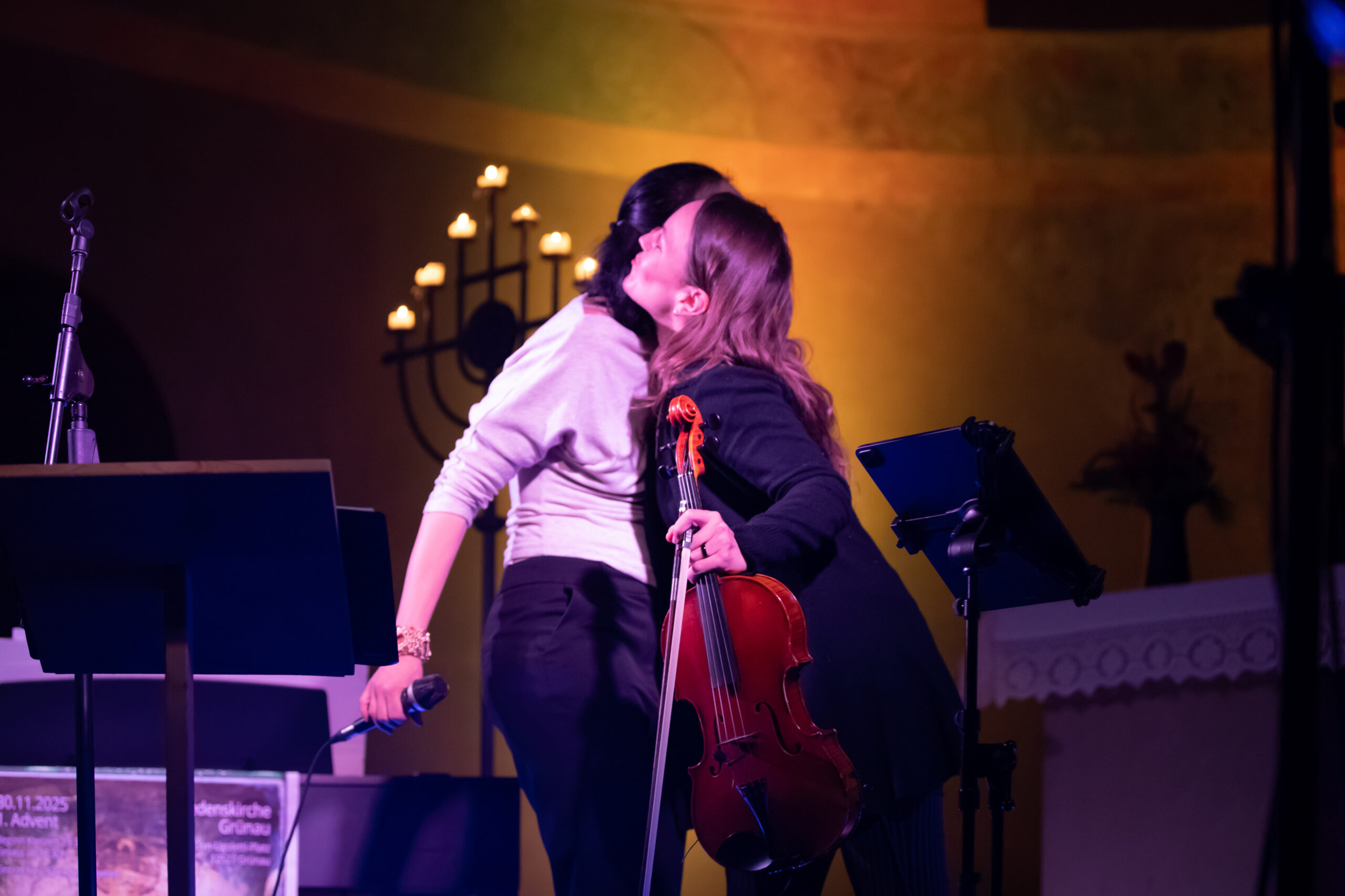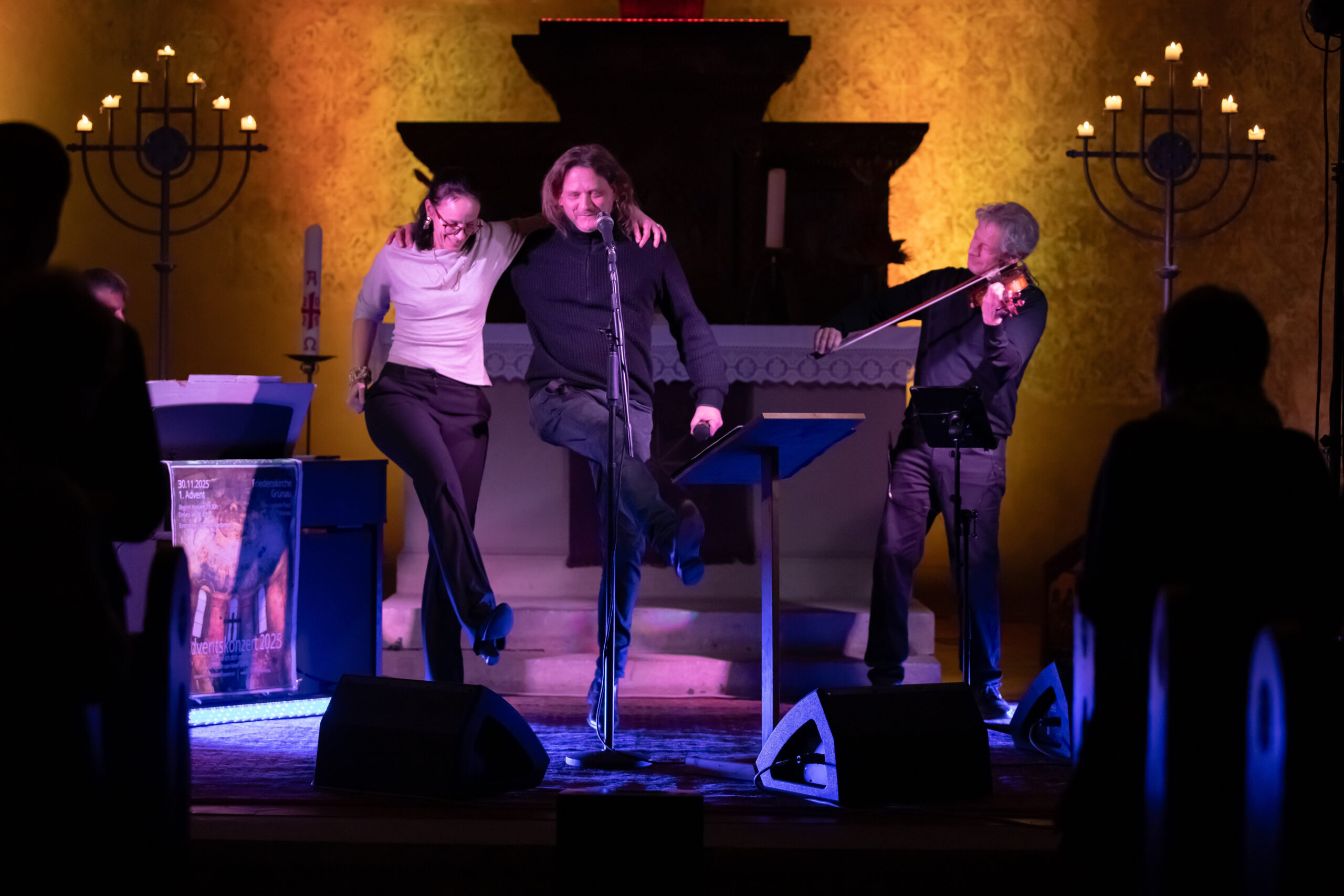 Einer der Höhepunkte des gemeinsamen Singens von Katrin mit dem Publikum. Wie immer bei unseren Adventskonzerten wurde natürlich auch gemeinsam gesungen und neben Tochter Zion und noch drei anderen Liedern war eben Stille Nacht ganz besonders, weil wohl niemand es in dieser Version kannte, in welcher vom Publikum die gewohnte Liedform gesungen wurde (übrigens großartig!) und Katrin „dagegen“ eine zweite MelodieTextform setzte. Ich habe leider versäumt zu fragen, wo genau diese Version herkommt, aber wir werden es erfahren, denn ohne zu spoilern, na gut…es ist ein Spoiler…es schreit ja nach einer Wiederholung zum nächsten, dann fünften Adventskonzert! 😉