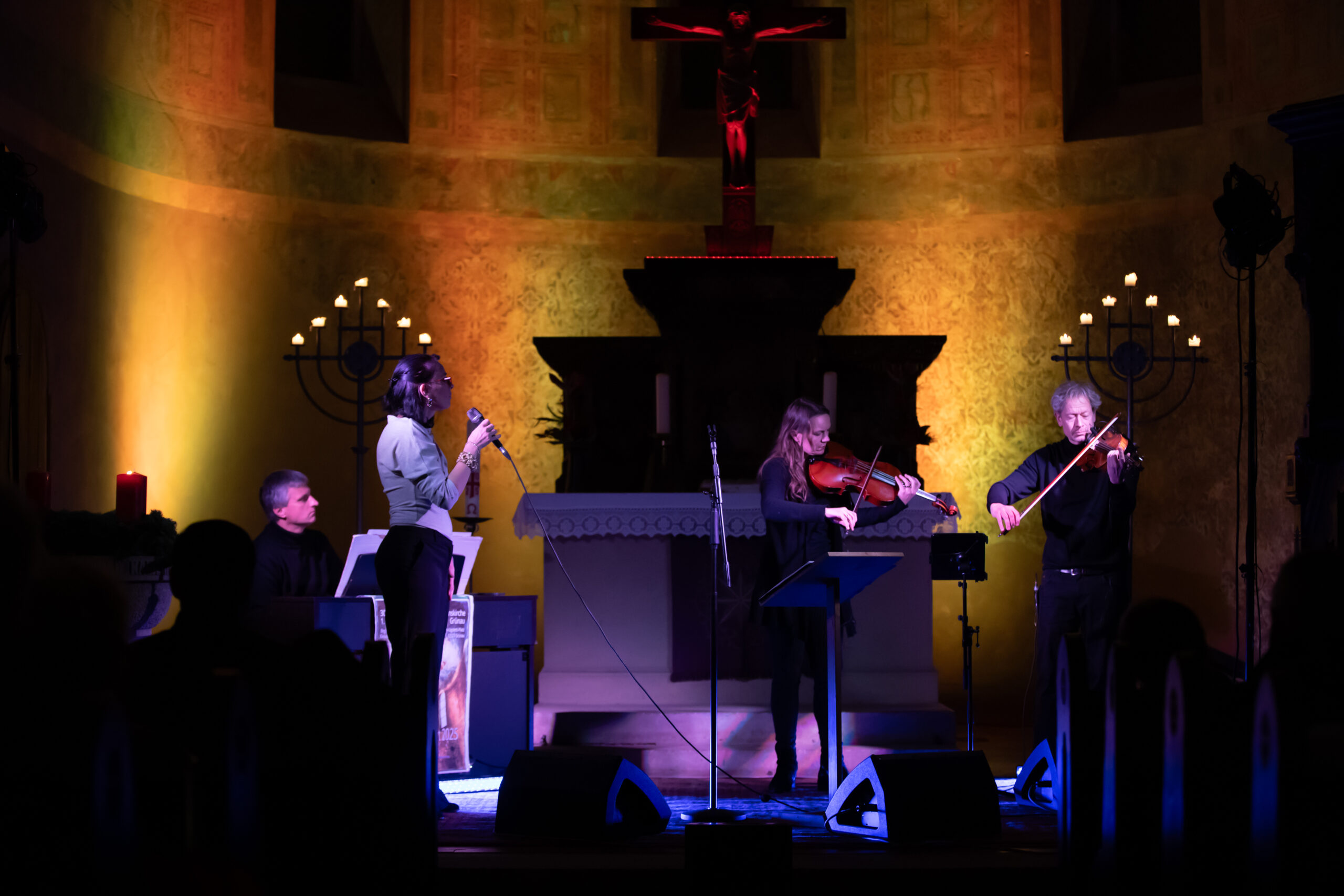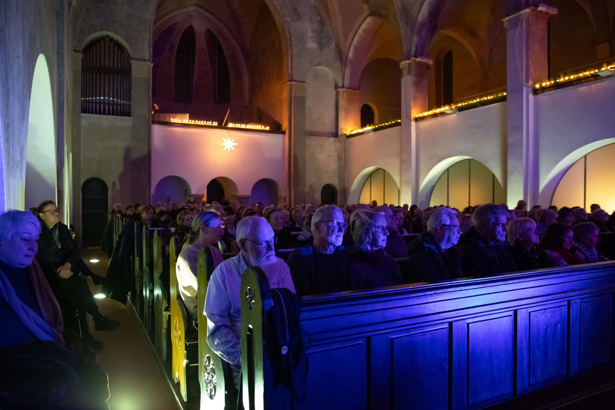 Wir brauchen auf dem KunstHof, aber explizit zu diesem besonderen Jahresabschluss noch mehr Menschen aus der lokalen Politik. Und das nicht als dämpfende Biomasse, denn die Kirche war ja auch dieses Mal wieder vollends gefüllt.