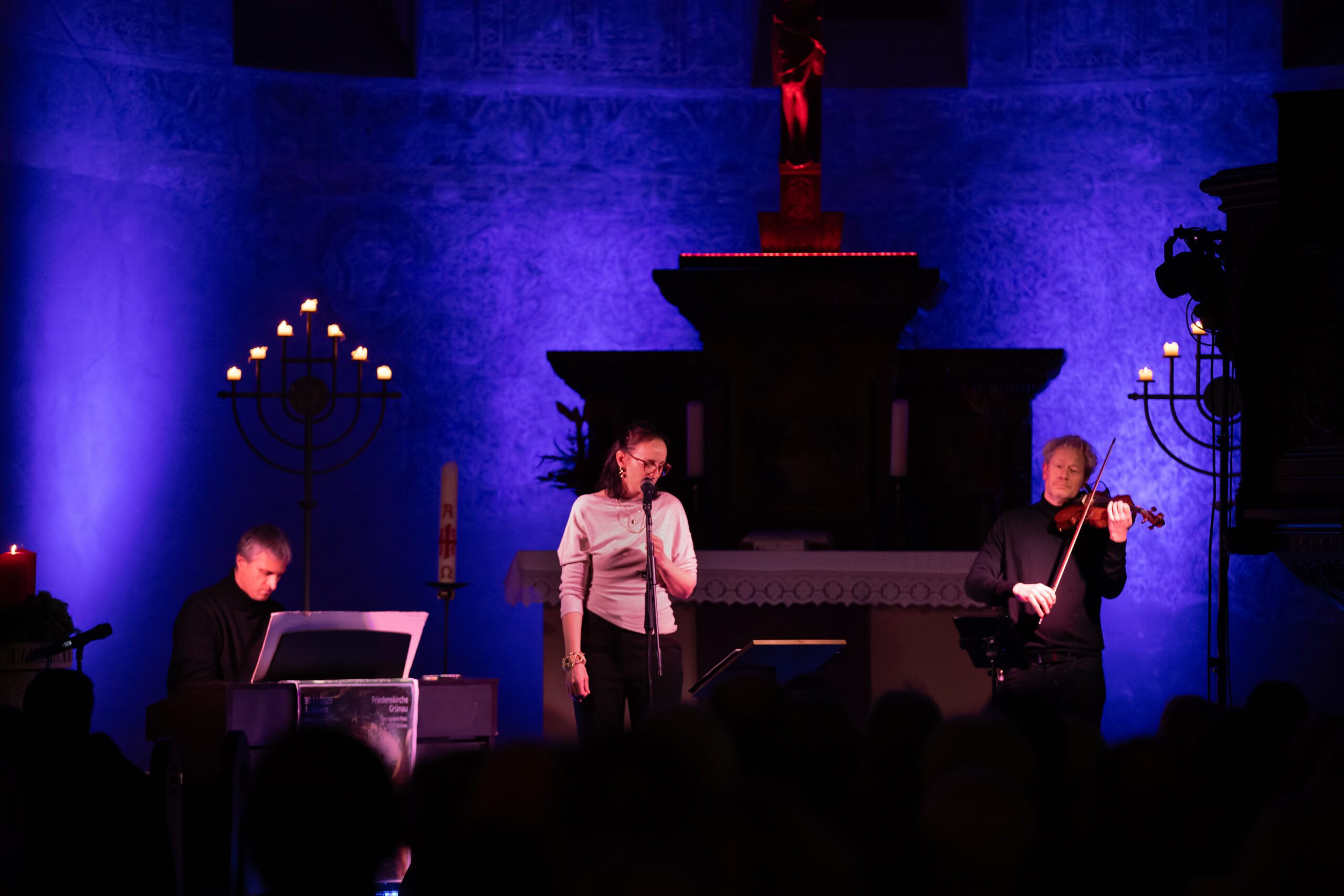 Die Emotionen schwankten von ergriffen, über freudig, neugierig auf die (auch familiären) Geschichten zwischendurch, dann wieder purer Gänsehaut, was soll ich sagen. Es war ein Fest und es tut mir sehr leid für alle die nicht dabei gewesen sind. Neben der Stimme will ich nicht vergessen zu erwähnen, welche Meister ihres Faches auch Harald Eggert am Piano und Ralf Hübner an der Violine sind und wie erfrischend im Einklang sich das Trio befindet. Da muss sich niemand in den Vordergrund spielen. Der Star sind die wunderbaren Lieder und Weihnachten selbst. Dem ordnet sich alles unter und bietet doch so viel Raum die Musik in die Herzen zu transportieren.